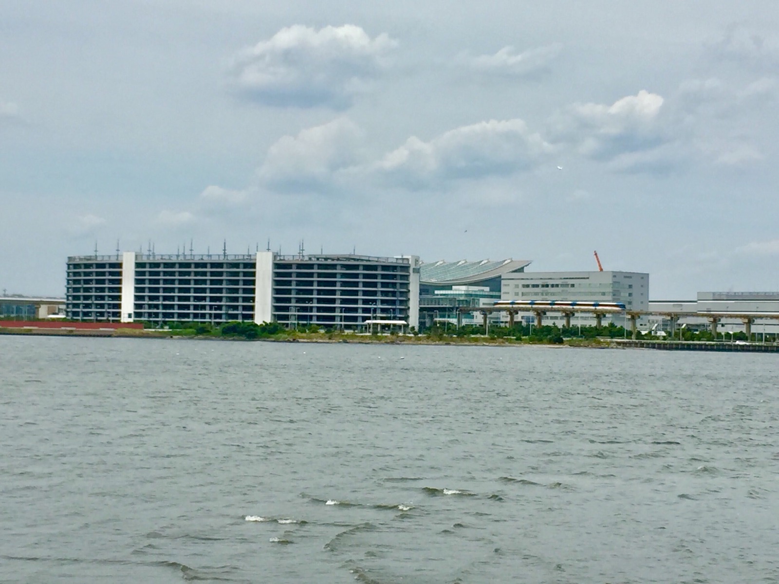 川の向こうに、羽田空港の国際線ターミナルビルが見えてきました。