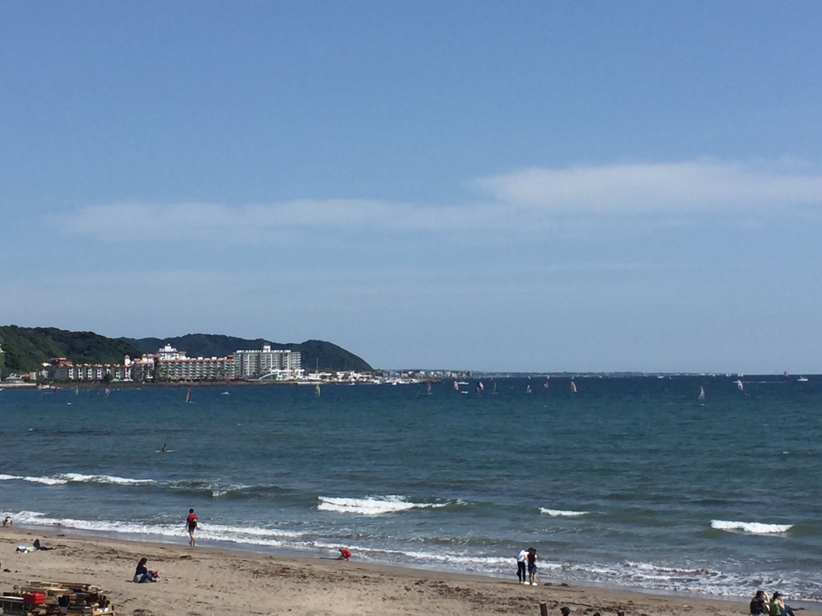 その場所は、稲村ケ崎から程近い由比ヶ浜鎌倉海浜公園付近と推察されます。
